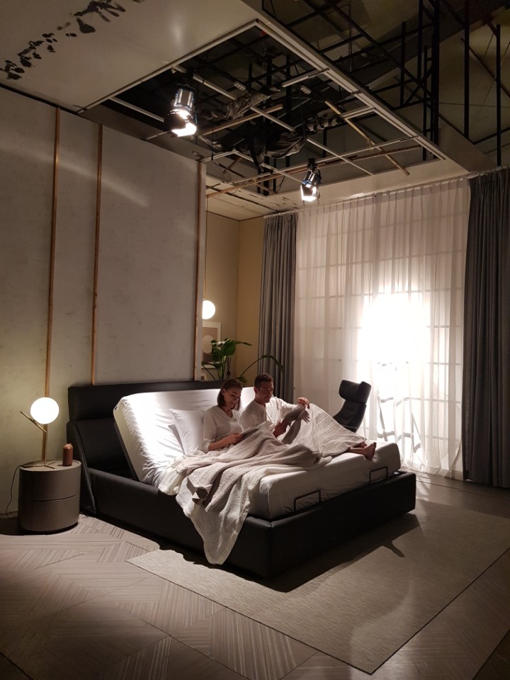 외국인남자모델과 외국인여자모델이 침대광고 촬영중입니다.